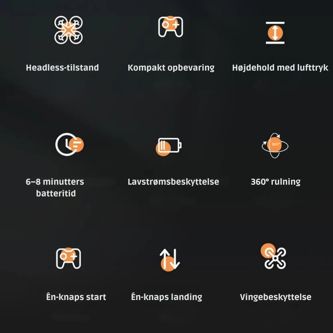 Søger du en gave, der skaber et wow-øjeblik lige ved udpakning? AeroNøva gør det uden besvær. Med 360° flips, LED-lys og stabil højdehold føles den som en topmoderne gadget, som selv begyndere kan styre fra første forsøg.