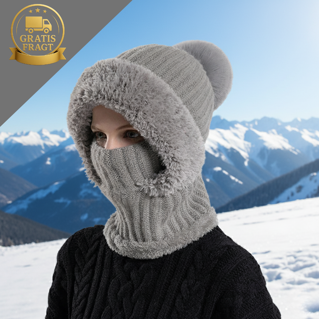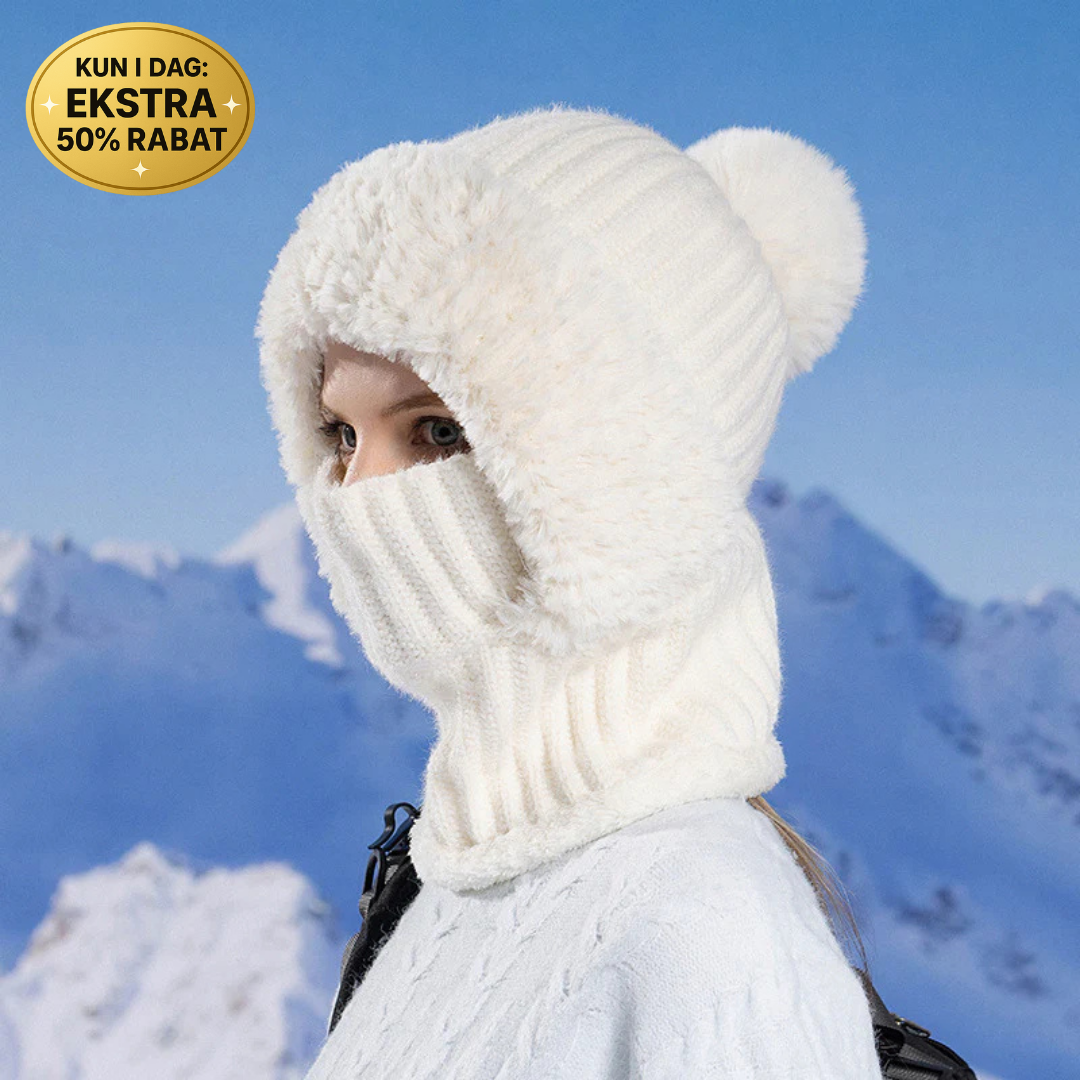 Mød CozyGarde™ Vinterset. Dette er den fløjlsbløde, alt-i-én løsning, der omslutter dit hoved, din hals og dine ører med en uigennemtrængelig mur af plysset varme.