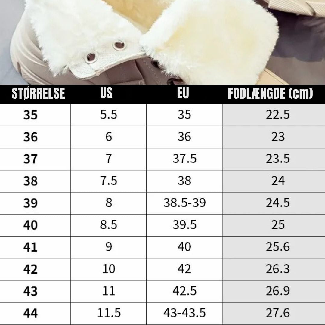 Disse støvler giver dig den perfekte balance mellem mode og komfort om vinteren. Takket være sålens solide greb kan du altid gå sikkert og trygt på glatte veje og snedækkede stier. Dine fødder forbliver varme, og du ser samtidig super stilfuld ud